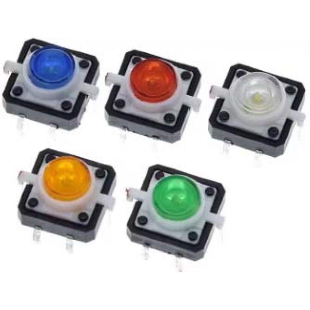 LED με στιγμιαίο διακόπτη για τυπωμένο κύκλωμα με ανεξάρτητες επαφές απο τον διακόπτη σε 5 χρώματα. Διαστάσεις: 12x12x4 χιλιοστά.